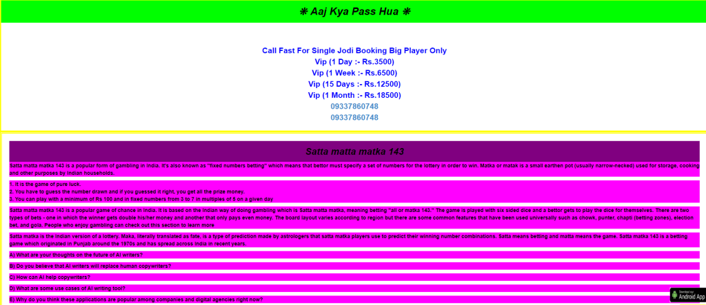 Right now there are many types of Satta ruler online games enjoyed in India in addition as in additional countries like Asia, Singapore, Pakistan etc. the foremost well-liked satta bazars found in India are Kalyan Matka, Kubera Satta, Main Mumbai Matka, Indian Matka, Gali Satta, Super Day Matka, Boss Matka, Madhur Matka, African american Satta, Satta ruler Gali Desawar, Guru Delhi, Mayapuri, Delhi King, and Mumbai Morning. The enjoyment of login into Satta matka on the internet website in Indian is increasing amongst the people on a daily basis. Despite the raids of police in addition to government administration, people young and old secretly play satta matka online. These days, many of us all play satta on the internet to avoid law enforcement raids on golf clubs. Gambling may always be a sort of lottery activity that started in Vegas, but is actually also become very fashionable in India by term? Satta?. It’s quite a risky game. Earlier that wont to end up being illegal to try out satta matka in India, now the government has got sanctioned the satta game with legit approvals from authority.And About us :- http://sattamattamatka.com/